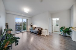 Welcome to The Wesley at Brydon Creek! This modern 2-bedroom, 2-bathroom home offers a bright, functional layout with bedrooms set on opposite sides for added privacy. The spacious living room flows seamlessly into the most sought-after U-shaped kitchen, featuring quartz countertops, stainless steel appliances, and a stylish eating bar perfect for 3 stools. Located in the heart of Langley City, this 4-year-old condo offers unmatched convenience — close to parks, Brydon Lagoon, trails, schools, and shopping. Enjoy easy access to public transit, with the upcoming SkyTrain extension just minutes away — a prime opportunity for future value growth. This is the perfect home for first-time buyers, investors, or anyone seeking urban comfort with a touch of nature.