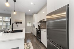 Stunning 2-bedroom, 2.5-bath townhouse in a prime location, built by Polygon. Perfect for a small family or entertaining, this home features a sparkling white kitchen with a large built-in island, a main-floor powder room, and a bright, open-concept layout filled with natural light. Upstairs, the spacious primary suite offers a generous walk-in closet and a beautifully updated ensuite. The second bedroom provides ample space for guests, a home office, or a growing family. Thoughtfully designed with an office nook, full laundry room, and a double side-by-side garage, this home truly has it all. Enjoy resort-style living at The Maples Club, featuring an impressive lounge and kitchen, fitness center, outdoor pool, theatre room, and kids’ play area. Shows 10 plus. Call today