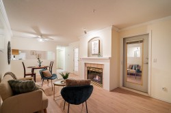 GREENBELT LOCATION. Tucked away in building #3, this condo is located in a peaceful, quiet setting backing onto a lush greenbelt, perfect for those who value privacy and calm. Enjoy new laminate flooring throughout, a cozy gas fireplace, and a covered balcony ideal for morning coffee or evening downtime. The flexible den can easily function as a second bedroom with the addition of a closet or armoire. Tons of open parking available. Walkable to the new Aldergrove Town Centre. Quick completion dates welcome. STORAGE UNIT IS ON THE SAME FLOOR right across the hall. Great for first time purchasers, Downsizers or investors. Come take a look!
