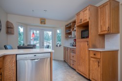 Looking for the perfect family home close to schools and parks? This meticulous 2,279 sq.ft. basement entry sits on a huge 12,626 sq.ft. lot, set back from 204th with a long driveway and fully fenced yard—ideal for kids and pets. The main floor offers 3 bedrooms, 2 full baths, a bright kitchen with eating area, and new sliding doors to a 365 sq.ft. deck overlooking the sunny, south-facing backyard. The spacious living/dining room is perfect for family gatherings. Downstairs features a massive rec room, a den or 4th bedroom, 3rd bathroom, and plenty of storage. Updates include new windows, newer appliances, and a refreshed main bath. Extras: wired shed, double garage with workbench, and raised garden beds—everything a family needs.