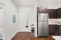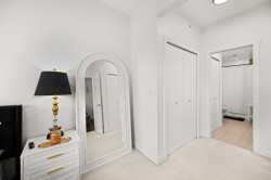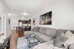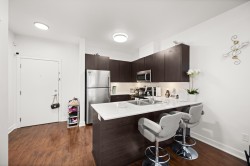 Welcome to Serenade — where downtown Langley living meets effortless style. This beautifully updated top-floor 1 bedroom, 1 bathroom home is filled with natural light and offers an open-concept layout perfect for modern living. The gourmet kitchen features quartz countertops, stainless steel appliances, and sleek laminate flooring, with cozy carpet in the bedroom for added comfort. Step out onto your generous balcony with city views — ideal for morning coffee or evening unwinding. Serenade offers a fitness centre and a clubhouse with full kitchen and patio, all set beside Douglas Park and just steps to shops, cafés, restaurants, transit, and everything downtown Langley has to offer.