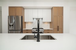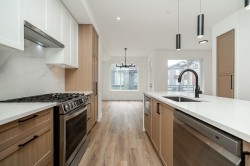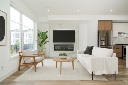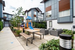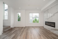 Welcome to Crofton! This 1,670 sq. ft. END-UNIT townhome offers 4 bedrooms and 4 bathrooms in one of the community’s best locations—QUIET, BRIGHT, with excellent sightlines and set back from main roads. 9-foot ceiling on all levels and laminate flooring throughout. The chef’s kitchen boasts a waterfall island, quartz counters, shaker cabinets and premium LG appliances—ideal for cooking and entertaining. Enjoy AIR CONDITIONING on all three levels, spa-inspired bathrooms, and a cozy fireplace. The double garage is EV-READY. The private, fenced, turfed yard provides plenty of space for family gatherings or relaxing outdoors. Walking distance to top schools, shopping, transit, and all the amenities Willoughby has to offer. Still under 2-5-10 year warranty and no GST; very low maintenance fee.