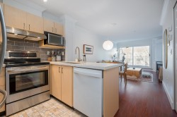 Top Floor 1 Bedroom Penthouse in a Perfect location! This 1 bedroom in the popular 'Rosewood' building is updated and has a new heat pump and A/C! Great floor plan, this unit has updated appliances and quartz counters in the kitchen and bathroom, big Deck faces north and gives nice privacy in bloom, living area is a good shape and has gas fireplace, in suite laundry with room for storage. 1 parking and 1 locker down as well as bike room. Just across the street from superstore, Willowbrook mall and all levels of shopping including the new skytrain. Super convenient spot!