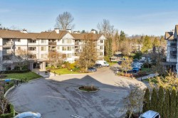 Welcome to one of Langley’s most coveted condo communities, where modern design, smart layout, and an unbeatable location come together. Built in 2021, this top-floor 973 sqft, 2 bed, 2 bath home delivers space, style, and function. The layout offers excellent bedroom separation and a grand primary with walk-in closet, ensuite, and room for a home office or 2nd bedroom / hobby room. The Chefs kitchen features amazing storage and cabinetry, stainless Samsung appliances package, beautiful quartz counters & HUGE Island, soft-close doors and drawers. Backing onto protected Bertrand Creek, enjoy nature trails right outside. With stunning GOLDEN EARS VIEWS just Steps to transit, the new ATC, Fraser Hwy & Hwy 1. Includes 1 underground parking, 1 locker, This is top-floor living done right.