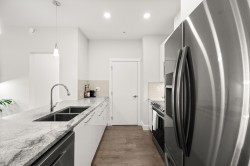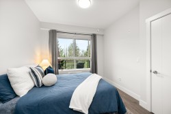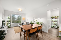 Welcome to The Wesley! This rare TOP-FLOOR 1 bed + den offers 683 sqft of bright, open-concept living with extra-height ceilings, massive windows, stainless steel appliances, bedroom A/C, and a spacious balcony. Located on the QUIET side of the building, this home faces a protected fish creek and greenbelt—enjoy maximum privacy, peaceful surroundings, and beautiful sunsets with no street noise or neighbours peering in! The versatile den is ideal as an office, nursery, or storage. Walking distance to the future SkyTrain, schools, Willowbrook Mall and more. Pride of ownership shines throughout—lovingly cared for by a dedicated plant lover. Includes 1 parking stall plus visitor parking. Convenient amenities include: gym, library, and yoga, study and conference rooms. A must-see!