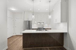 TOP FLOOR.MOUNTAIN VIEWS. QUIET COURT EXPOSURE.This Spacious 686 square foot 1-bedroom home is located the heart of Willoughby Heights-Langley's most desirable and fast-growing neighbourhoods. Enjoy being steps away from High-Ranking SCHOOLS, Premium SHOPPING, World-class DINING and a wide range of Recreational AMENITIES. This home FEATURES soaring 9' and 10' Ceilings, a Functional open concept layout, Laminate floors, Expansive windows, Modern kitchen, Walk-Through 2-sectional Closet, Generous balcony and valuable Storage section inside the laundry. Built in 2018 and maintained with exceptional care, this home is move-in ready for its next owner.