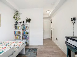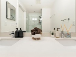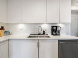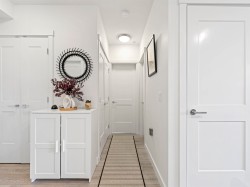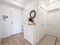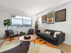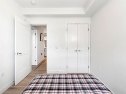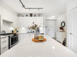 3 Beds | 2 Parking | EV Ready. Welcome to a 1100+ sqft CORNER UNIT at The GRAYSON! The heart of this home is the gourmet kitchen featuring a gas range, high-end S/S appliances, and a large quartz island that can seat up to 4. Relax in the primary bedroom with direct access to a sunny SW-facing balcony. Features include 2 parking spots with EV charging and rare oversized roll-up storage. Unbeatable location right next to over 65 shops and services—everything you need is right at your doorstep.