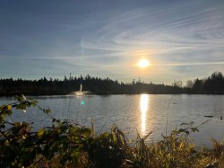 RARELY AVAILABLE 2,119 SF UPDATED RANCHER BACKING ONTO BRYDON NATURE LAGOON, OFFERING STUNNING WATER FOUNTAIN VIEWS & SUNSETS! Located on quiet CDS nestled on a generous level lot & serene southwesterly backyard, enjoy direct access to miles of nature trails at your gate. FULLY WHEELCHAIR ACCESSIBLE w/THOUGHTFUL UPGRADES, the bright open layout features welcoming foyer, 3 skylights, spacious living/dining area w/gas FP, & wht kitchen w/SS appliances, island, & quartz countertops. Dbl garage professionally converted to versatile games rm. Enjoy 2 private patios-off the kitchen & pbdrm. UPDATES: PEX plumbing, spray insulation in crawlspace, HVAC & tankless H2O heater 2022, drainage systems 2024 & MUCH MORE. 2 wired sheds. Close to amenities & future SKYTRAIN! PRE-INSPECTION REPORT AVAILABLE