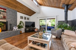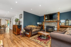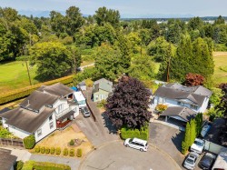 Beautifully renovated and full of West Coast charm, this 3-bed rancher is tucked away on a quiet cul-de-sac. The gorgeous kitchen has loads of cabinets and counter space with a massive island. Step down into the formal living room with vaulted wood ceilings and stone fireplace. The primary bedroom with 2 pc ensuite (closet is plumbed for a shower) and french door access to the back yard is a dreamy oasis. The backyard has a massive deck overlooking a private, fenced yard that backs directly onto Newlands Golf Course, with a gate for easy access. Enjoy the two storage sheds & RV parking. There's a potential future use to Low Rise Residential, Buyer to confirm with the City. Live long term or hold for investment!