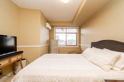 TOP FLOOR PENTHOUSE WITH SOARING CEILINGS AND A QUIET, WESTWARD VIEW! This one's perfect. Immaculately-maintained, air-conditioned, with 2 parking spaces and an oversized storage locker right at your parking stall. With views of the park from your west-facing living area and deck, you get natural light. Stone counter tops, hardwood cabinets, high-durability vinyl plank flooring and a lot of pluses. Walnut Ridge is known also for being one of the most soundproof buildings in the area, with high-level construction featuring concrete between floors and separate walls (with space in between) dividing homes. Stainless steel appliances, high-speed elevators, steps to Willoughby Town Center for easy shopping and convenience. The list goes on! ***OPEN HOUSE SAT NOV 8 2 - 4 PM***