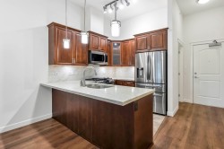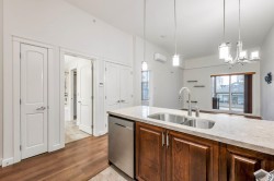 **PENTHOUSE w/ 13FT CEILINGS facing WEST built by QUADRA in the luxurious YORKSON PARK complex** Step into luxury living with our exquisite one-bed, one-bath residence spanning 771 sqft, complete with a spacious 82 sqft retractable glass panel solarium/deck. Indulge in top-of-the-line appliances, sleek quartz countertops, and the comfort of heated flooring in the bathroom. Entertain effortlessly with a natural gas line on the patio and relish in the convenience of built-in AC. 2 parking spots with pullup storage locker at end of spot & EV charger included! Nestled in a prime location, enjoy proximity to schools, shopping, transit, and easy highway access!