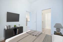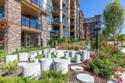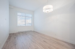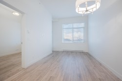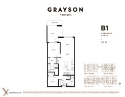 GRAYSON ~ located in the heart of Willoughby Town Center, this TOP FLOOR unit is north facing with a huge deck boasting stunning mountain views! Offering 753 sq ft, 2 bedrooms, 2 full baths & a bright open, living space! The well appointed kitchen has plenty of white cabinetry, quartz, SS appliances incl. gas, large island & pantry! Spacious bedrooms including primary with walk in closet & 4 pc ensuite! There is in suite laundry,11 ft ceilings, & with the luxury acoustic rating, it gives you the quietness of a single family home w/ convenience of condo living! 1 parking & roll up door to storage locker in front of parking stall! Stores, restaurants, parks & schools right outside your door & quick hwy access for commuters. Gym, party rm & communal patio hang out!