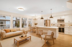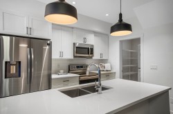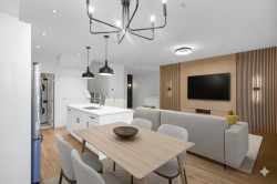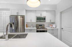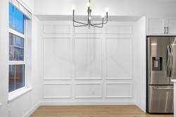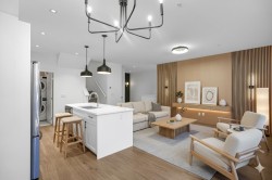 OPEN HOUSE Saturday FEB 14th 1pm - 4:30pm. 3 BED + FLEX + NO GST + FULLY RENOVATED + BRAND NEW INTERIOR PAINT + 369 SQFT ROOFTOP PATIO + EXTRA LARGE GARAGE 550 Sq Ft + SUPER LOW STRATA FEES $233 + SIDE BY SIDE GARAGE + PAINTED GARAGE & EPOXY + VACANT. MODERN 2025 FULLY RENOVATED CUSTOM DESIGNER Townhome in KENSINGTON LOFTS. Custom Luxury Finishes That You Won't Find In Any Townhome. Everything Freshly Painted Inside Brand New Paint on Walls, Trim, Doors and All Woodwork. Features a wide open layout, including fresh wainscoting and wooden slat feature wall, a large chef-style kitchen, and powder room on the main. Enjoy a private rooftop patio, perfect for entertaining. Walking Distance to R.E. M Secondary (IB) & Josette D. Elementary, with fast access HWY 1. Seller Can Install A/C UNIT.