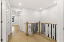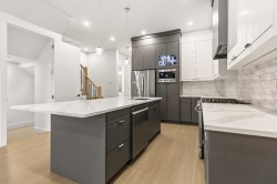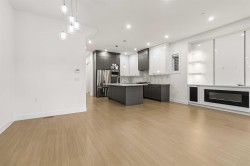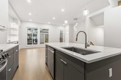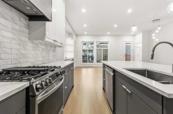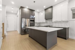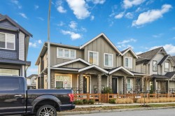 3-level 1/2 duplex in Willoughby Heights with modern finishes and a functional layout. Main floor offers an open-concept great room, dining area, and designer kitchen with stainless steel appliances, plus a den and powder room. Upstairs features a spacious primary bedroom with ensuite, two additional bedrooms, full bath, and laundry. Basement includes a large rec room, bedroom, and storage. Back lane access with detached garage, fenced yard, and 2-5-10 home warranty. Close to schools,