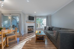 Hunter's Run offers this 1453 sq ft town home with some lovely updates, making this move in ready! White kitchen features S/S appliances, quartz and has "pass through" window to spacious dining area. Sliders lead to the covered upper deck for convenient barbequing. Living rm has cozy gas fireplace and easy care laminate. Well sized bedroom and a 4 pc bath on the main floor. Head down to another bedroom, 4 pc bath & huge laundry rm & storage. The rec room could easily be made into an additional 3rd bedroom by adding a door. Step out to the large lower patio and your private tree lined outdoor space. Some updates include Hot Water Tank, washer, fridge & more! Great location with trails leading to Walnut Grove Senior Secondary & pool! All shopping, amenities all outside your door.