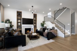 ENCORE ESTATES. Custom crafted homes proudly developed by Miracon are a beautiful addition to desirable Langley West. This 6 Bed/den, 3.5 bath home boasts 10’ ceilings on the main, open layout, gourmet kitchen, option to add spice kitchen, Fisher Paykel appliances, fireplace w/ built ins, 7” Eng. H/W floors, O/S windows, gas furnace plus AC & gas BBQ R/I. Finishes incl. shaker cabinets + quartz counters throughout, spa inspired ensuite features a free-standing tub, in-floor heating + frameless glass shower. The finished basement has 9’ ceilings w/ a 2-bed legal suite. Backs on GREENBELT. Minutes to Highway 1, restaurants + recreation centres make Mirada an A+ location. Move in Summer/Fall 2026. LIST PRICE INCLUDES GST.