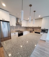 This stunning modern style townhouse 1154 SF and holds 2 spacious bedrooms and 2.5 bathrooms. It is open concept floor plan with amazing attention to detail and quality finishing. The contemporary kitchen offers a large island, quartz countertops and premium stainless steel appliances with wide laminate flooring. There are double two cars and tons of extra space for storage.The large master bedroom offers an ensuite washroom, a contemporary shower and a large bathtub. The measurements given were taken from a plan of the property. All measurements to be verified by purchaser if important.