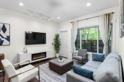 YORK Living craftsman-style townhome offering over 1,800 sq.ft. of modern, functional living. Main floor features a stylish kitchen, spacious living & dining areas, and a powder room. Upper level offers 3 bedrooms including primary with 4-pce ensuite, open den, laundry, and full bath. Top floor boasts a 25’ x 14’ attic room with full bath—ideal for media room, games room, or extra bedroom. Bright interiors with 9’ ceilings and stone fireplace. Well maintained with recent upgrades incl. new washer, bathroom sink, toilet seat & additional plumbing improvements. **Photos are virtually staged**