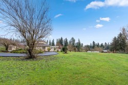 Set on 4.43 private acres backing onto the Salmon River, this property combines natural beautify with everyday convenience. The well-kept home features a spacious primary bedroom on the main with ensuite, walk-in closet, and private patio access, plus formal living and dining rooms and a bright sunroom that captures the surrounded greenery. The land offers space for a hobby farm and a large graveled area ideal for parking or storage, with zoning allowing up to three commercial vehicles (max 5,600 kg each), and an outbuilding with power. Just 5 minutes to Fort Langley and minutes to Walnut Grove's shops, dining, recreation, and Hwy 1.