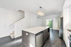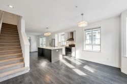 York by Mosaic! This bright & beautifully maintained End Unit offers an abundance of natural lights! The Open Concept main floor features a spacious living & dining area, perfect for entertaining. The Large kitchen is equipped with SS appliances, quartz countertops, leading out to the wide sun deck - ideal for relaxing /BBQs. Upstairs, there are generously sized 2 bed 2 bath, including a primary suite with ensuite. The extra long tandem garage offers ample storage space or the flexibility to add a home office/den. Step out from the garage to your own fenced yard backing onto green space, great for gardening/outdoor enjoyment. Visitor parking conveniently located next to & in front of the unit. Close to recreation, schools, shopping, easy access to HWY 1.