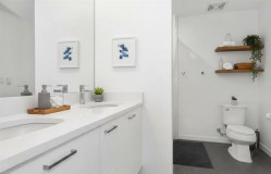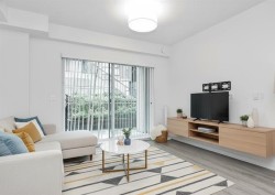 A 2018 built ground floor, one bedroom condo in a prime Park Hill location that has been immaculately maintained! includes a large walk-in closet, two bathroom sinks, and flooring that is a combination of tile, laminate, and carpet. Featuring a great floor design that makes the most of the nearly 700 square feet of living space. This color combination was ideal for the island, quartz counters, contemporary kitchen cabinets, and neutral wall colors. With over 1200 acres of lush parkland and community pathways only a short walk out the back door, this one is perfect for pet owners. This building will be a sought-after location for many years to come thanks to the protected forest acres, and since rentals are permitted, it's the ideal investment!