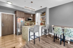 Spacious and bright ground-level end unit offering 2 bedrooms, 2 bathrooms, and 2 parking spots. This well-maintained home features an open-concept layout with oversized windows filling the space with natural light. The modern kitchen is equipped with quartz countertops, stainless steel appliances, and ample cabinetry. Primary bedroom includes a walk-through closet and private ensuite. Enjoy a large patio with convenient access, perfect for outdoor living. Located in a well-managed complex within walking distance to shopping, Costco, restaurants, transit, and recreation.
