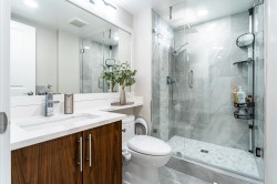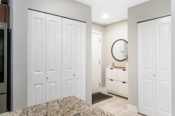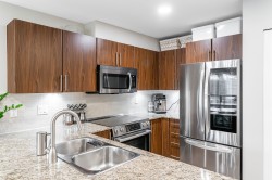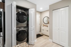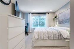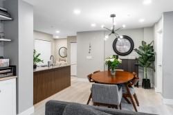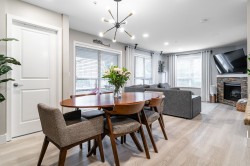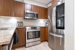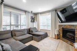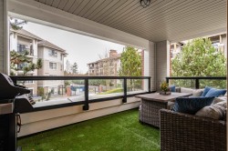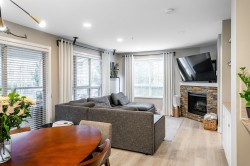 RENO'D 2 bed, 2 bath CORNER UNIT w/large COVERED balcony, on the peaceful side of the building! Offering 907 sqft of stylish, updated living space, this home blends comfort, privacy & convenience. This bright, modern & move-in-ready condo features luxury vinyl flooring, freshly scraped ceilings, pot lighting, stunning bathrooms (beautiful glass & tile showers), new kitchen S/S appliances, new carpets in bedrooms & much more! Open-concept layout separates bedrooms with the main living area. Spacious primary bedroom w/corner windows & walk-in closet! And did we mention the reno'd bathrooms?!? It's like you're at the SPA!! Great location too - easy access to Hwy 1, steps from shops, trails & schools. 2 SxS parking stalls & storage too. Want more details? Visit realtor website for more info!!!