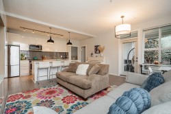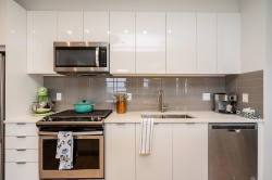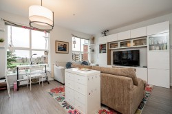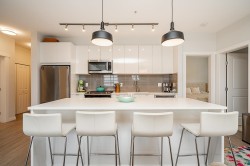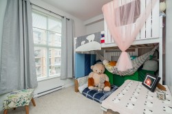 Welcome to Union Park by Polygon, a community designed with families in mind. This bright corner unit offers 1098 sq. ft. of comfortable living space with 3 bedrooms and 2 bathrooms. Large north- and west-facing windows bring in plenty of natural light and overlook the community park and mountain views. The open kitchen features stainless steel appliances, a gas range, stone countertops, and soft-close cabinetry, perfect for everyday family life and entertaining. The primary bedroom includes a well-appointed ensuite with double sinks and a spacious seated shower. 2 pets no sz restriction. Residents enjoy resort-style amenities, including an outdoor pool, hot tub, fitness centre, basketball court, playground, and clubhouse, all within a safe, walkable community—an ideal place to call home.