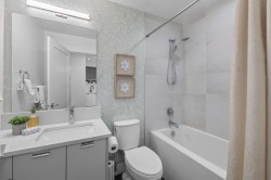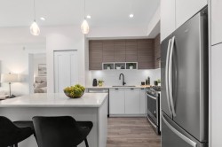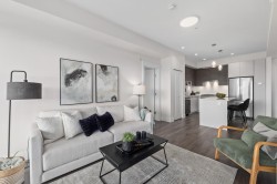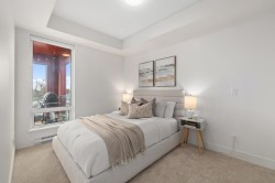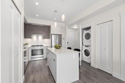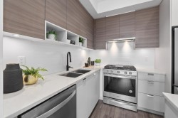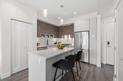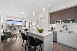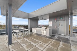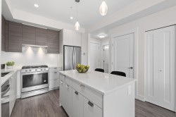 Welcome home to ‘The Residences’ in the heart of Willoughby Town Centre. This bright top floor 2 bed, 2 bath home offers a thoughtful open concept layout perfect for both everyday living and entertaining. The kitchen features quartz countertops, modern cabinetry, a gas range stove, clean contemporary finishes, and is roughed in for A/C. Step outside to the oversized balcony, perfect for hosting guests or simply taking in the beautiful mountain views. Enjoy the privacy and quiet of a fourth floor, corner location along with 2 parking stalls and a storage locker. Located just steps from vibrant shops, restaurants, schools, parks, and transit, this home delivers the convenience of urban living while maintaining a warm neighbourhood feel that truly feels like home.