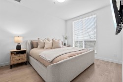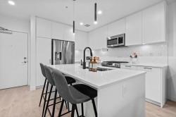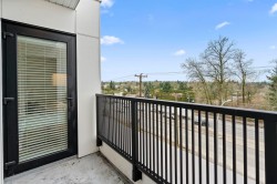 Welcome to this RARE 3 bed + den residence in Latimer Heights. This gorgeous home offers 1,200+ sqft of well-designed living in the heart of Willoughby. Built by award-winning Vesta Properties, the home features a chef-inspired kitchen w/ premium appliances, gas range & elegant stone countertops flowing seamlessly into open living & dining areas. The primary suite serves as a true retreat, w/ a spacious walk-in closet & stylish ensuite w/ double sinks. The two additional bedrooms are thoughtfully separated for privacy, with a private den. Step outside to your west-facing covered deck to enjoy stunning mountain views & incredible natural light. Steps to coffee shops, restaurants, schools, Langley Events Centre, Carvolth bus loop, and quick access to Highway. 2 parking + large storage.