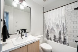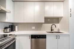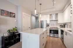 Welcome to this modern and thoughtfully designed 1 bed+den unit, offering 661 sqft of comfortable living in the heart of Willoughby. Situated on the quiet inside of the third floor, this unit provides a bright and functional open-concept layout that maximizes every inch of space. Enjoy cooking in the full-size kitchen featuring sleek cabinetry, quartz countertops, and stainless steel appliances. The generous living area opens to a private balcony, ideal for relaxing or entertaining. The versatile den is perfect for a home office, nursery, or extra storage. This home includes ample closet space, in-suite laundry, and access to Hudson & Singer’s lifestyle amenities, including a courtyard, lounge, and communal workspaces. Located steps from Willoughby Town Centre, schools, parks, and transit.