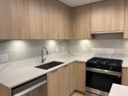 Welcome to this brand new 1 BED + 1 BATH, East-facing condo at South Village by VESTA Properties, known for quality construction and thoughtful design. This home offers 9’ ceilings and a spacious open-concept kitchen, dining, and living area, perfect for both everyday living and entertaining. The gourmet kitchen features a large island, gas range, soft-close cabinetry, quartz countertops, and stainless steel appliances. Spacious bedroom with double-sink vanity in the bathroom. Air conditioning is included for for year-round comfort. Enjoy the convenience of 1 EV-capable parking stall and 1 storage locker, with shops, restaurants, and daily essentials right below. Ideally located with 1-minute access to Hwy 1 and walking distance to the bus exchange—perfect for commuters.
