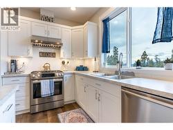 Executive Rancher with views & flexibility in Logan Lake’s Ironstone Ridge. Built in 2018, this beautifully finished home offers over 2,600 sq ft of bright, thoughtfully designed living space on a flat, fenced .27-acre lot with RV parking. Vaulted ceilings, rich HW floors, & open layout create a sense of space & comfort. The stunning kitchen anchors the home with Bosch SS appliances, gas stove, large island, & warm under-cabinet lighting. Living & dining areas flow onto a partially covered deck with NG BBQ hookup—perfect for relaxing/entertaining. Built-in speakers & main floor laundry add everyday ease. The main level features a spacious primary bedroom with WI closet & 3-piece ensuite, plus 2 add'l bedrooms, ideal for families. Downstairs you’ll find 1 add'l bedroom, playroom & bonus room which form part of the main living space. The WO basement is filled with natural light & was originally designed with in-law suite in mind, with a bedroom, full bathroom, stacking laundry, a large family room area, all with direct access to a covered patio that is wired for a hot tub. This level offers incredible flexibility for growing families, guests or recreation while still flowing seamlessly with the rest of the home. Comfort & efficiency shine with NG forced air heating, A/C, heated double garage, irrigation, extra insulation, large HWT, & security wiring. Hardy board exterior, & a 12x16 shed/workshop with cooler complete this impressive, usable property backing onto crown land. (id:27)