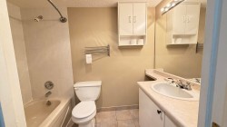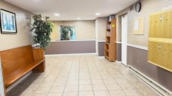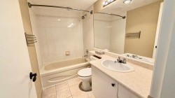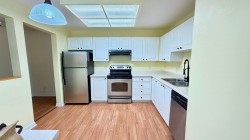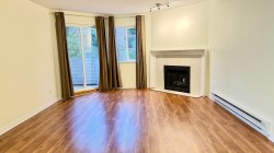 Spacious 2-bedroom, 2 full bathroom condo offering 1,058 sq. ft. of well-designed living space. The generous kitchen features ample cabinetry and stainless steel appliances. Laminate flooring runs throughout, and the unit has been freshly painted for a clean, move-in-ready feel. The strata fee includes hot water and a gas fireplace. Conveniently located close to shopping, recreation centres, schools at all levels, restaurants, coffee shops, transit, and parks. One dog or one cat is permitted, and the home is not ground level, comes with one parking stall and in suite storage.