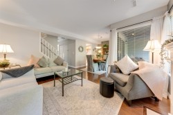 A charming family home meticulously cared for, with nature visible from every window. This very well-maintained 3-bedroom, 2-bath townhouse has been refreshed from top to bottom, and the pride of ownership shines from corner to corner. The bright, functional layout features ground-floor living with spacious kitchen, living and dining areas that open to a large patio and a stunning, private, fully-fenced, beautifully landscaped yard nestled into a backdrop of lush greenery. Parents and pet owners alike will love the peace of mind of an enclosed, secure backyard, fully visible from the kitchen, dining, and living rooms—perfect for keeping an eye on little ones while they play safely just steps away. Move-in ready with tasteful décor, or completely transform with your update ideas.