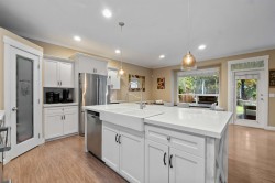 Beautiful 4 bedroom, 4 bathroom family home in the sought-after Cottonwood neighbourhood, built by Falcon Homes. This open-concept home backs onto a peaceful greenbelt, offering privacy and beautiful nature views. The updated kitchen features a large island and opens to a spacious covered patio—perfect for entertaining & outdoor living year-round. The backyard has been tastefully updated with artificial turf & relaxing water feature. Upstairs offers four large bedrooms, ideal for large or growing families. Fully finished basement with a generous rec room provides plenty of space for play, work, or media. Quality finishes include crown mouldings & air conditioning. Conveniently located near Alexander Robinson and Kanaka Elementary, parks, & amenities— This is a home you don't want to miss!!