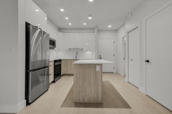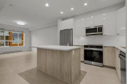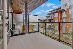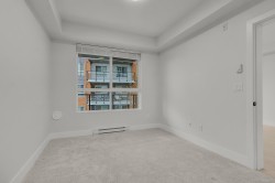 **NO GST !!** Welcome to PODIUM by Whitetail Homes! This spacious SOUTH FACING 1 BED 1 BATH home features a modern open-concept layout with a large island, quartz countertops, stainless steel appliances, shaker-style cabinetry, and tile backsplash. The generous bedroom includes a walk-in closet with built-in shelving. Plus a LARGE BALCONY perfect for relaxing. 1 PARKING and 1 STORAGE LOCKER included. Enjoy building amenities such as a gym, party room, and playground for children. Ideally located with easy access to the WEST COAST EXPRESS, Golden Ears & Pitt River Bridges, and close to shopping, dining, and everyday conveniences. LOW STRATA FEES!