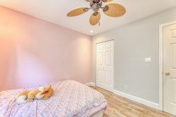This charming Rancher-style home is nestled in a quiet cul-de-sac. The living room features French doors, bay window and a cozy gas fireplace. Kitchen and the bright eating area with garden and bay windows is complemented by solid wood cabinets and stone countertops. The family room includes a gas fireplace and sliding doors that open to a covered patio with stamped concrete. The generous primary bedroom offers walk-in closet and an ensuite with large walk-in shower. Additional bedrooms are well-sized and share a 4-piece main bathroom. Convenient laundry access leads to the double garage with high ceilings, and an extra-large crawl space provides ample storage. Beautifully landscaped backyard features a pre-wired gazebo. Recent updates incl. laminate flooring throughout and new appliances.