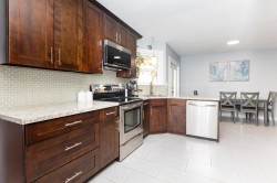 Beautifully updated 3 bed, 2 bath rancher on a quiet cul-de-sac with over 1,580 SF of living space. Renovations include a newer kitchen, 12mm laminate flooring, fresh paint, updated lighting, newer doors/hardware, plus newer roof, gutters, furnace, and hot water tank. Stay comfortable year-round with new central A/C! The kitchen boasts ample cabinets, granite counters, glass backsplash, and stainless steel appliances. Conveniently located within walking distance to transit, elementary and secondary schools. Quick possession available!