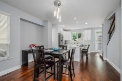 2 storey w/registered TRU basement this 2136 living space w/4 bed/4-bath home recently renovated extensively and upgraded. Features incl an updated kitchen with quartz counters, large island, slide-out range hood & corner cabinet pullout unit., pantry, stylish backsplash, and S/S appliances. Upstairs offers 3 generous bedrooms, including a primary suite with walk-in closet and greenbelt views. Basement includes a large bedroom, kitchen w/QUARTZ counters, living room with separate entrance, walk-in closet, laundry, and modern finishes. South-facing yard with new deck, double detached garage off lane, A/C rough-in, hardwood flooring, gas fireplace w/mantle, modern pot & accent lighting, 3yrs hot water tank, new paint in & out. Quiet, family friendly Albion area, Greenbelt has a creek