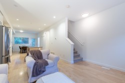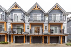 Ruxton Village! 3-bedroom, 3-bathroom townhouse. new paint throughout & brand-new carpeting. Move-in-ready. Bright, open-concept main floor ideal for everyday living & entertaining. Spacious living room, dining, powder room & in-suite laundry. Entertainer’s kitchen thoughtfully designed with modern cabinetry, quartz countertops, stainless steel appliances, and a 5-burner gas stove. Oversized windows flood the space with natural light. Upstairs, generous primary bedroom boasts its own private balcony, walk-in closet, & 3-piece ensuite, complemented by two additional well-sized bedrooms. Lower level offers a double tandem garage with ample storage, including additional space under the stairs. Located in sought-after community, close to West Coast Express, schools, daycare & amenities.