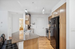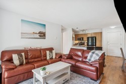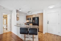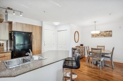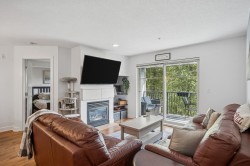 PRIME LOCATION at Westbrooke! Enjoy refined living in this beautifully maintained, highly sought-after community. This elegant 2 bed, 2 bath home offers a bright open layout with quality laminate flooring, granite countertops, and a cozy gas fireplace in the spacious primary bedroom, complete with his & hers walk-through closets. Relax on the large covered patio overlooking the tranquil McKinney Creek greenbelt. Pet-friendly building with rentable guest suite. Gas and hot water included. Steps to restaurants, grocery stores, Meadow Ridge Shopping Centre, and more!