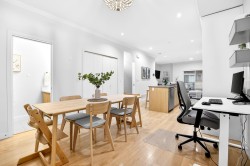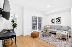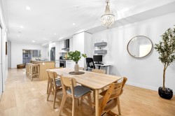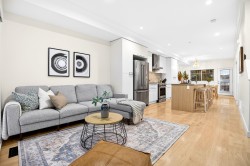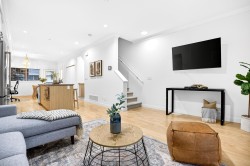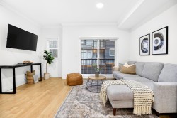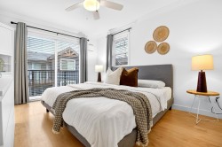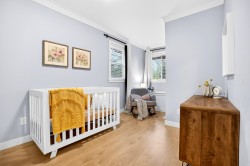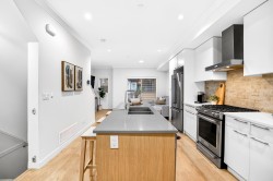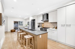 This immaculate 3-storey corner townhouse in Ruxton Village is where comfort, style, and location come together effortlessly. Sunlight fills the open-concept main floor w/ 9' ceilings, crown moulding, and oak wide-plank laminate flooring, while air conditioning keeps the home comfortable year-round. The kitchen feat. quartz counters, soft-close cabinetry, upgraded Kitchen Aid S/S appliances, & a 5-burner gas stove, flowing seamlessly to a deck with gas hookup for weekend BBQs. Upstairs offers 3 bdrms & 2 baths, including a primary bdrm with it's own private balcony. A 2-car tandem garage with ample storage, a second deck, and a private fenced turf backyard. Minutes from downtown, shopping, dining, and recreation. Perfect for 1st time buyers & young families.