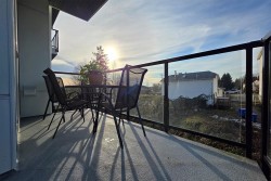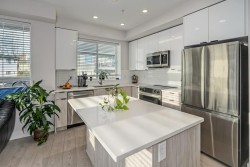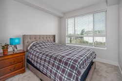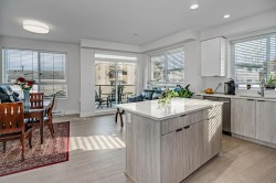 Welcome to Podium, an architectural standout in Maple Ridge! This bright, 1-year-old 2 bed / 2 bath corner unit offers effortless modern living with comfort in every detail. Inside, enjoy stylish finishes like quartz countertops, stainless-steel appliances, and a sleek tile backsplash. The airy open-concept layout flows onto a spacious wrap-around L-shaped balcony, perfect for morning coffee or relaxing evenings. The primary bedroom features a walk-in closet and a calming ensuite. Located near a park with tennis and basketball courts, and just steps to the West Coast Express and riverfront trails. Pet-friendly, includes 2 parking stalls that have designated EV charger, GYM facility, with early possession available. A perfect place to call home!