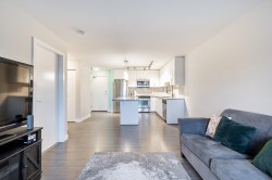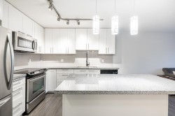 EDGE ON EDGE - Immaculate South-East facing, bright 4th floor 1 BED+PLUS DEN /1 Bath suite in the popular Edge on Edge built by Maclean Homes! Open concept floor plan features 8' ceilings, granite counters, undermount sinks, kitchen w/shaker cabinets & S/S appliances. Large master with walkin closet & cheater ensuite. Front loading in-suite laundry & large den/office space. Covered deck with street parking all around, secure underground parking, 2 pets & rentals allowed! Steps to Shopping, Transit, Restaurants, Rec Center, gyms and Schools! Call today to book your showing!
