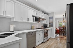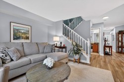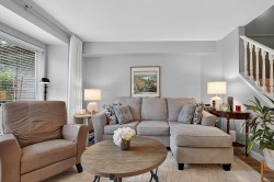 RENOVATED 2-bedroom, 2 bathroom home in 55+ Fraser Glen community. Recent updates include laminate flooring, carpet on stairs and fresh paint throughout. The kitchen boasts refreshed cabinets, quartz countertops, tile backsplash, and updated stainless steel appliances. Enjoy casual dining in the eating area off the kitchen, with a separate formal dining room for special occasions. The living room features a cozy gas fireplace and large windows that overlook the private backyard. Step outside to a south-facing patio and beautifully landscaped garden. Upstairs, you'll find two spacious bedrooms and 1 full bathroom. Repiped to PEX throughout. The clubhouse offers an indoor pool, fitness room, party room, and workshop. RV parking available. Just move in and enjoy! OPEN HOUSE Sat Feb 7 2-4