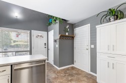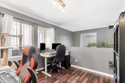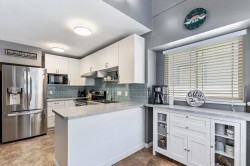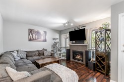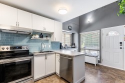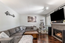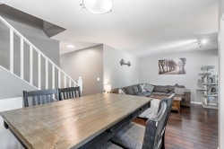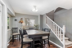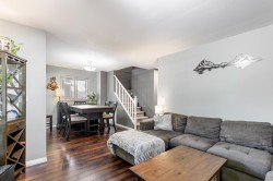 WELCOME TO ABERNETHY LANE! This BRIGHT and WELL-MAINTAINED 2-LEVEL END UNIT townhome features 3 LARGE BEDROOMS plus a FLEX/DEN area and 2.5 BATHROOMS. Enjoy a SPACIOUS layout with an UPDATED KITCHEN, OPEN-CONCEPT LIVING & DINING areas, and a COZY GAS FIREPLACE. Upgrades include a NEWER WASHER & DRYER, FRIDGE, and DISHWASHER (2021) and NEW HOT WATER TANK. The PRIMARY BEDROOM offers VAULTED CEILINGS and ample closet space. Includes 2 PARKING SPACES, one in the SINGLE-CAR GARAGE. Located in a FAMILY-FRIENDLY complex near SHOPPING, SCHOOLS, TRANSIT, AMENITIES, and the ABERNETHY CONNECTOR. A FANTASTIC HOME in a GREAT LOCATION!