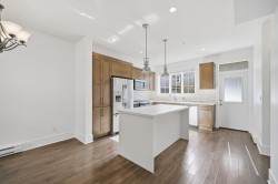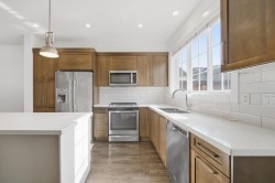 Introducing Village Green, Maple Ridge's two-level townhomes. The featured A great floorplan of thoughtfully designed living space that feels like a single-family home. The modern open layout includes a gourmet kitchen with rich bi-colour cabinetry, quartz countertops, stainless steel appliances, and a convenient main-level powder room. Upstairs are three spacious bedrooms, including a luxurious ensuite with a large, frameless glass shower. Enjoy the comfort of watching the kids play in your safe, fenced yard or take a stroll to the 2,600 sq. ft. tree-lined community park at the heart of Village Green. Unrivalled location.