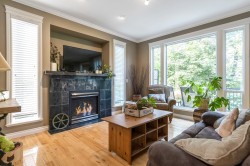 Welcome to this beautifully designed 3-level home in a quiet gated community of just 40 residences, surrounded by lush green space for a true sense of privacy and charm. Featuring 3 bedrooms and 4 bathrooms, this open-concept layout showcases quality finishes and custom cabinetry throughout. Enjoy the cozy gas fireplace, large sundeck, and a limited-maintenance private backyard. Comfort is built-in with geothermal heating and air conditioning, included in the strata fees. The luxurious ensuite is sure to impress, offering a true retreat at the end of the day. This home has a separate entrance with a potential for a suite! Come check it out!