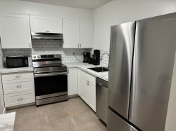 Large corner unit, 1051 sqft. with an open layout, lots of windows and a cozy gas fire place. Nice sized primary bedroom with its own 4 piece bathroom plus there is a second 4 piece bathroom in this unit. Upgrades include new flooring, cabinets and fresh paint, nothing to do but move in and enjoy. Convenient location just steps to downtown shopping, restaurants, entertainment, library and the West Coast Express. Lots of privacy provided by a large concrete wall behind the deck. This is an affordable option for those wanting to downsize, get into the market or create rental income. This condo comes with its own underground secure parking and a storage unit. The building is under going significant upgrades and the assessment has been paid. See it today before its gone.